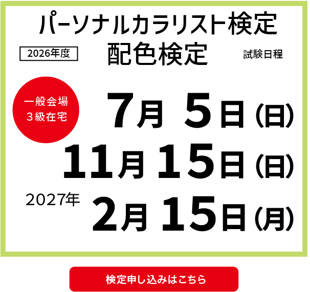 合格者7万人を誇る、厚生労働省後援の「パーソナルカラリスト検定」と「配色検定」。色彩の知識・配色力を証明し、ビジネスや日常で”色のチカラ”を活かす資格です。
