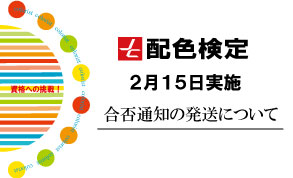 2月15日(月)実施の第2回配色検定の合否通知は、3月15日(月)に一斉発送発送予定です。 問い合わせ先 協会事務局☎03-34068708(平日9:30~18:00)