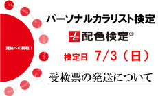 7月3日(日)に実施される第50回パーソナルカラリスト検定、第6回配色検定の受検票を郵送いたしました。 受検番号など詳細は受検票に記載してありますのでご確認ください。 なお、6月24日(金)の時点で受検票が届いていない方...続きを読む