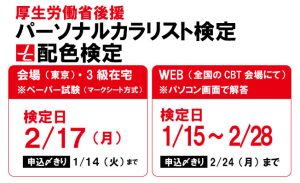 第58回パーソナルカラリスト検定、第14回配色検定の合否結果発表は3月17日(月)です。 【インターネットからの申込みの方】 3月17日(月)よりマイページにて合否結果が確認できます。 ■【マイページログイン画面はこち...続きを読む